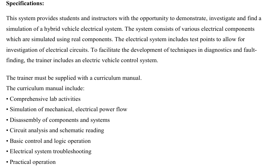 Hybrid Vehicle Systems Panel Trainer