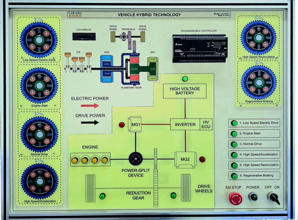• The simulator on HEV (Hybrid Electric Vehicle) fuel type will be included in a complete set of educational equipment addressed to the basic study of systems for cars.